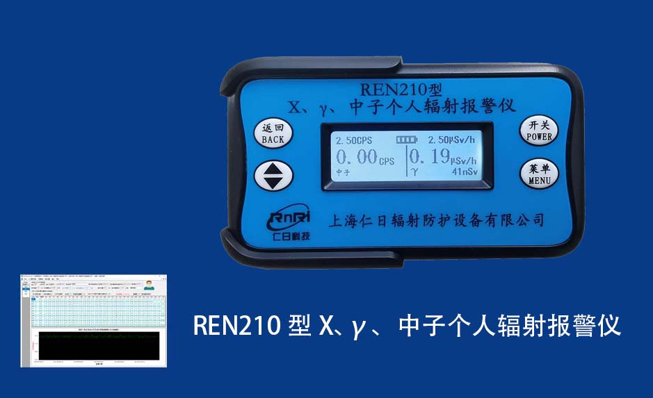 REN210型X、γ、中子個(gè)人輻射報(bào)警儀內(nèi)置SiPM和鋰玻璃晶體組成中子探測(cè)器儀器,采用反照率方式探測(cè)中子射線,同時(shí)也能探測(cè)X、γ射線。因此它可同事監(jiān)檢測(cè)X、γ、中子三種射線。能顯示工作場(chǎng)所的劑量當(dāng)量率和累積劑量,更換電池時(shí),日期及累積數(shù)據(jù)能永久保存。可選配RenRiPersonal個(gè)人劑量管理軟件,該軟件可存儲(chǔ)多個(gè)人的歷史數(shù)據(jù),能記錄日累積、月累積、年累積、輻照時(shí)長、計(jì)算平均劑量率、扣除或不扣除本底輻射,且以文字和圖譜的方式展現(xiàn)數(shù)據(jù)。廣泛應(yīng)用于環(huán)保、化工、水泥、煤礦、土木工程、石油、醫(yī)院、疾控、進(jìn)出口商檢、核電、加速器、機(jī)場(chǎng)、中子源庫和其他安檢、邊境控制海關(guān)檢測(cè)等領(lǐng)域中的工作人員進(jìn)行個(gè)人安全防護(hù)監(jiān)測(cè)及放射性提示。